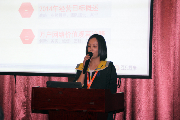 接着,王琳总以一部万户网络全体员工和部分客户共同出演的短片为开场,带领大家重温了2013年发生在我们工作中的那些难忘瞬间,并就2013年公司经营管理工作做了总结报告,对2013年经营情况进行了分析,对2014年经营目标及行动计划进行了阐述,同时重新诠释了万户价值观,在原有“创新、务实、诚信、团结”的价值观基础上增加了“客户”,彰显未来公司将坚定不移地践行“以客户为中心”的经营理念。
