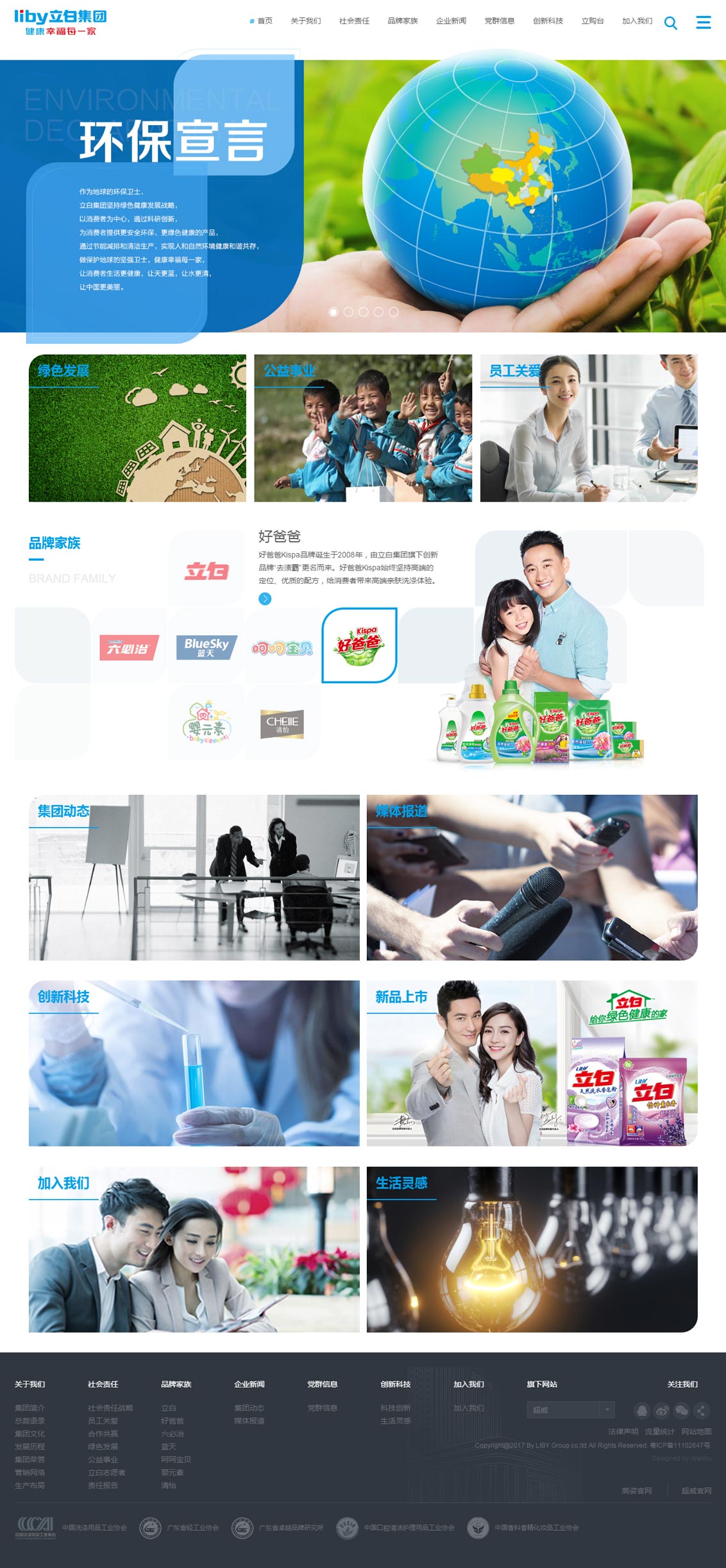 本页面展示为万户网络设计制作的广州立白企业集团网站部分页面截图。