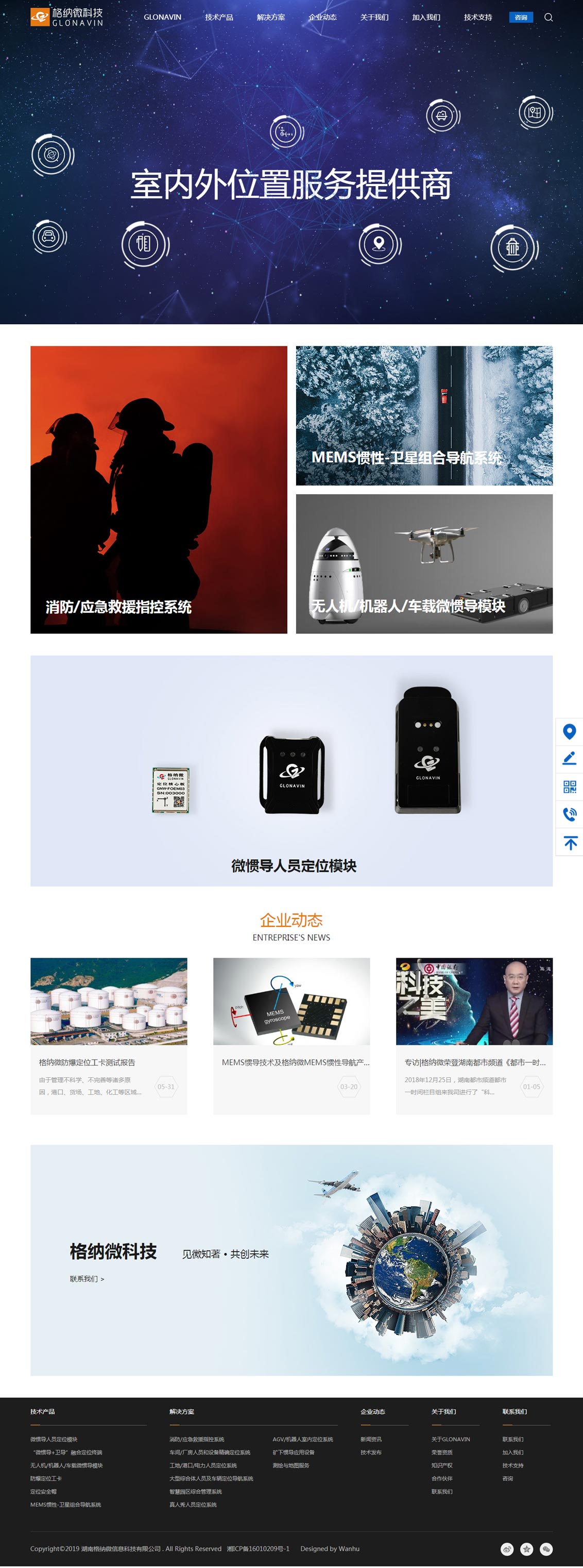 湖南格纳微信息科技有限公司是一家以微惯性导航系统和多传感器融合为核心技术,以定位、导航、测绘、地图为主营业务的国家高新技术企业,立足以低成本的通用MEMS惯性传感器为基础,达到不依赖导航卫星、外部基站、指纹数据库的高精度自主室内定位,并融合GPS、北斗等实现室内外“全域定位”。