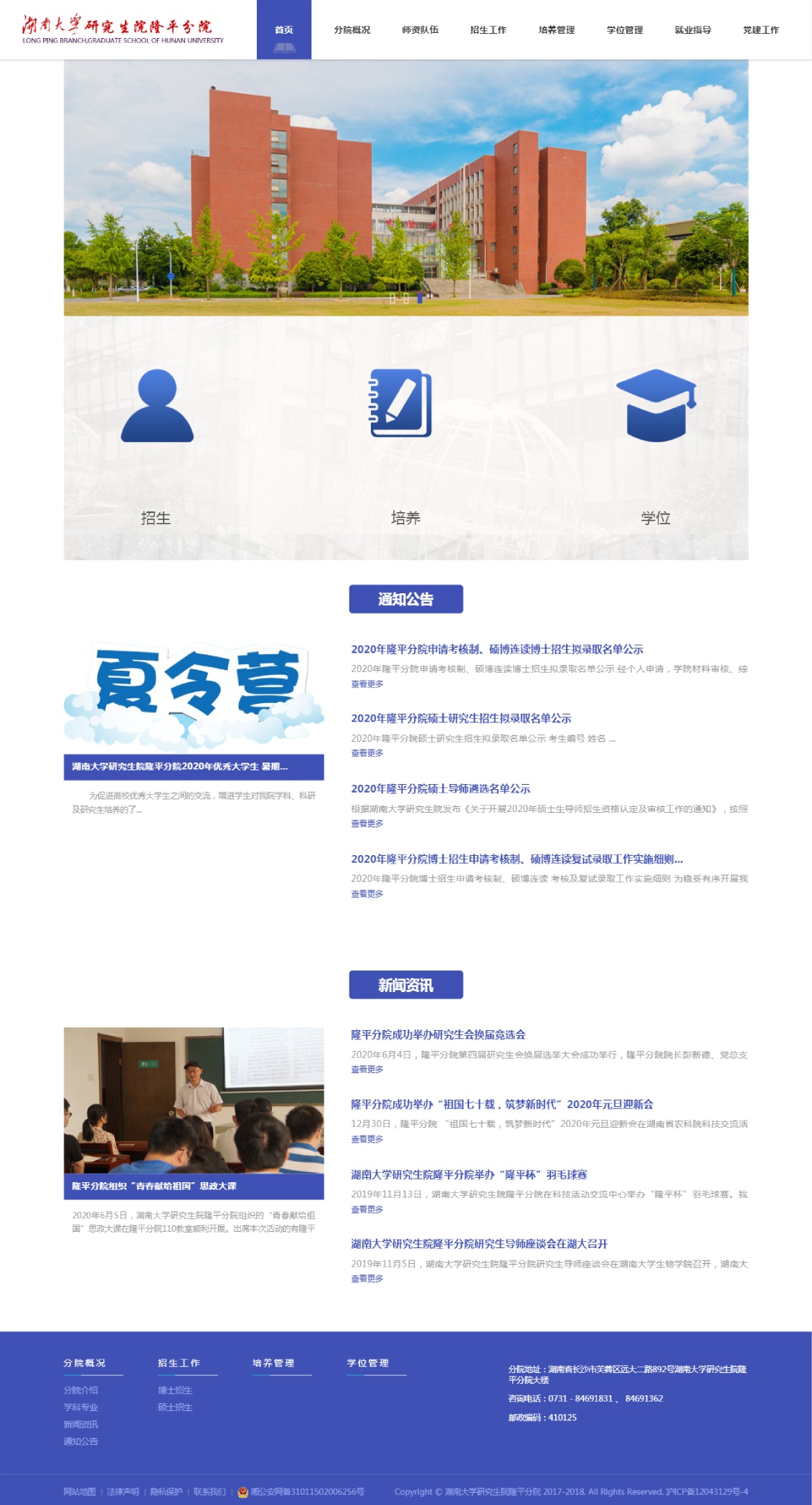 本页面展示为长沙万户设计制作的湖南省农业科学院研究生院网站部分页面截图。