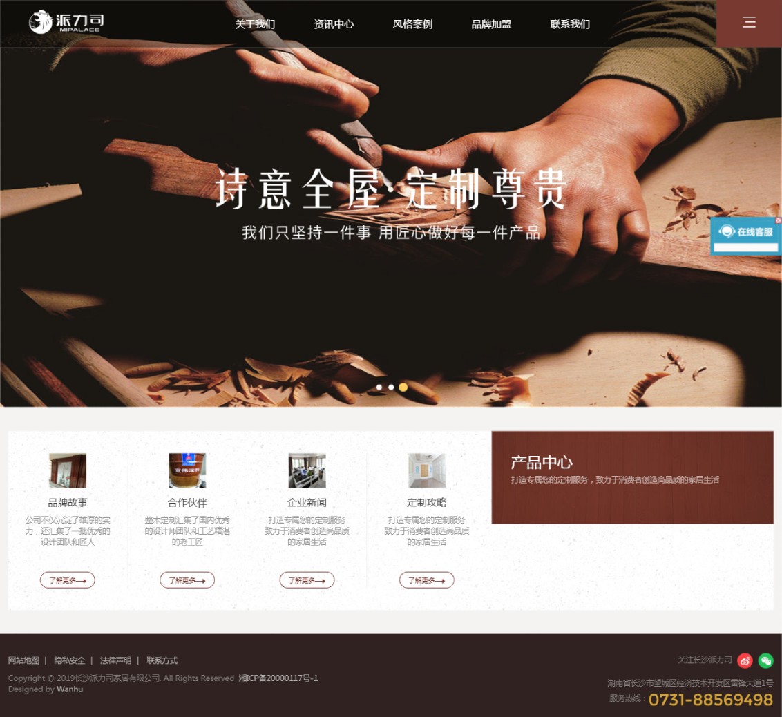 本页面展示为长沙万户设计制作的长沙派力司家居有限公司网站部分页面截图。