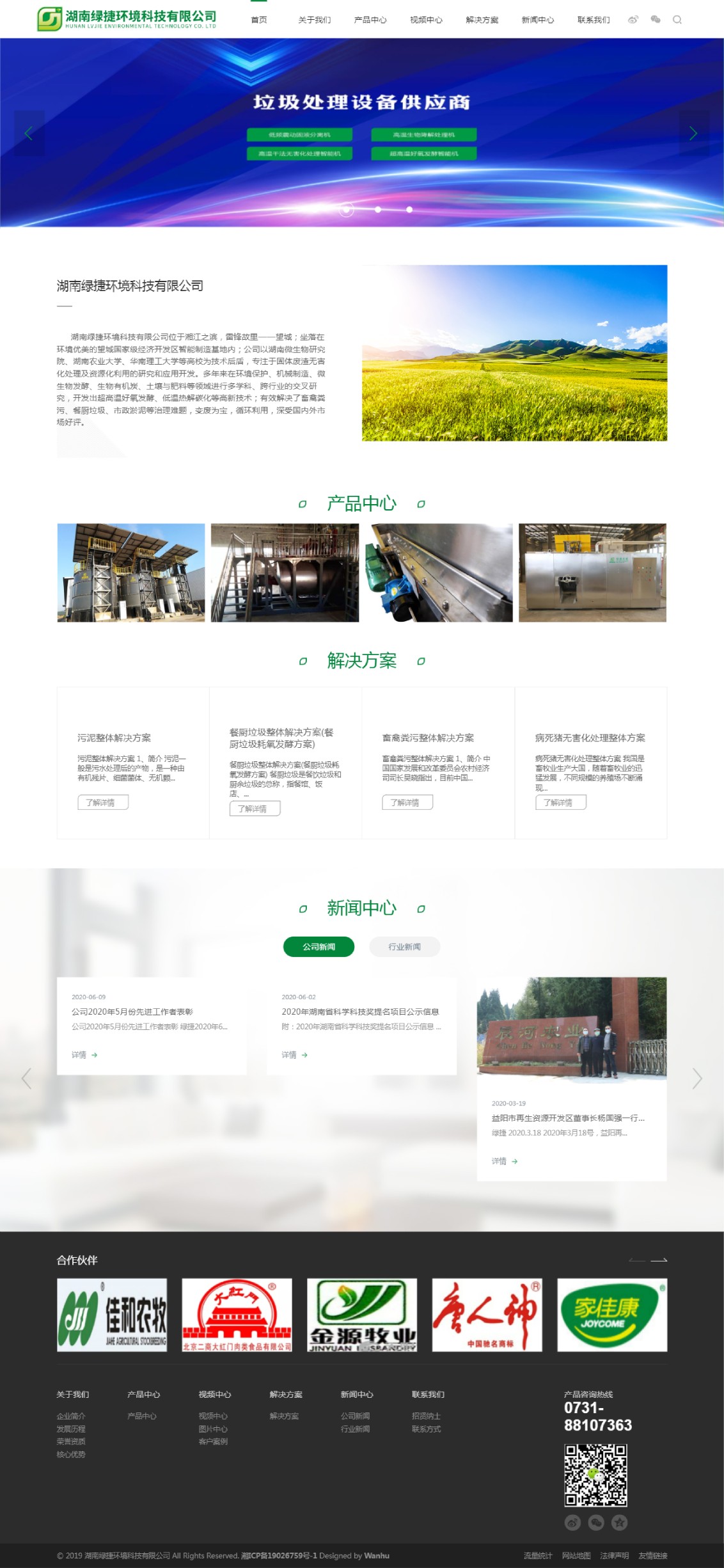 本页面展示为长沙万户设计制作的湖南绿捷环境科技有限公司网站部分页面截图。