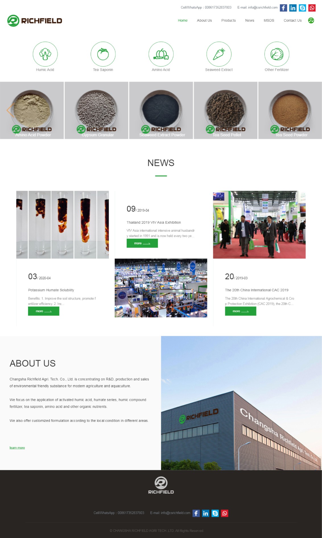 本页面展示为长沙万户设计制作的长沙元丰农业科技有限公司网站部分页面截图。
