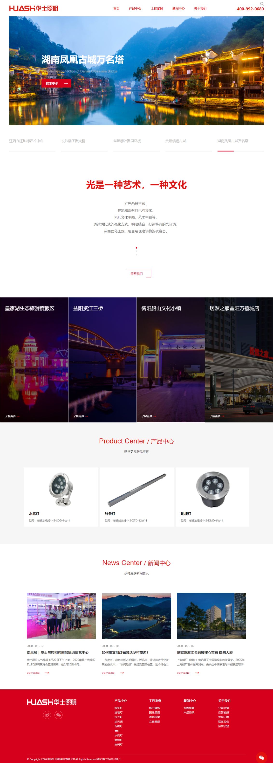 本页面展示为长沙万户设计制作的湖南华士照明科技有限公司网站部分页面截图。