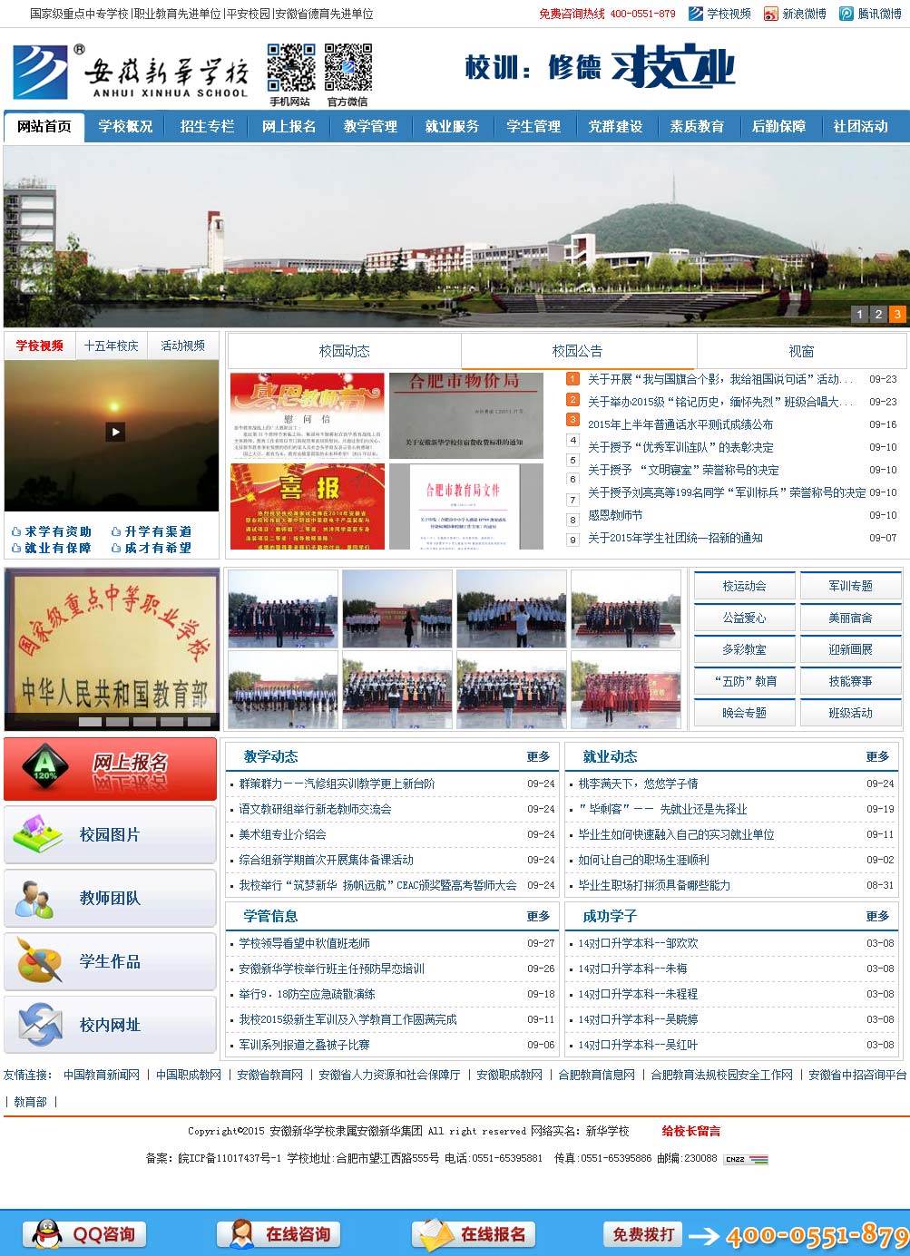 安徽新华学校是经省教育厅批准,由安徽新华集团全额投资兴办的一所具有颁发学历教育资格证书的全日制中等专业学校。2006年1月,学校被国家教育部认定为“国家级重点中专”。
