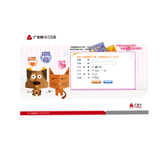 广发银行与万户合作8年,包括“爱狗卡”“真情俱乐部”“铂金俱乐部”和“广发网销平台”等多个主题银行卡官网项目,透明卡版设计,用户可以通过网站选择定制信用卡模板,定制自己专属的信用卡版面。
