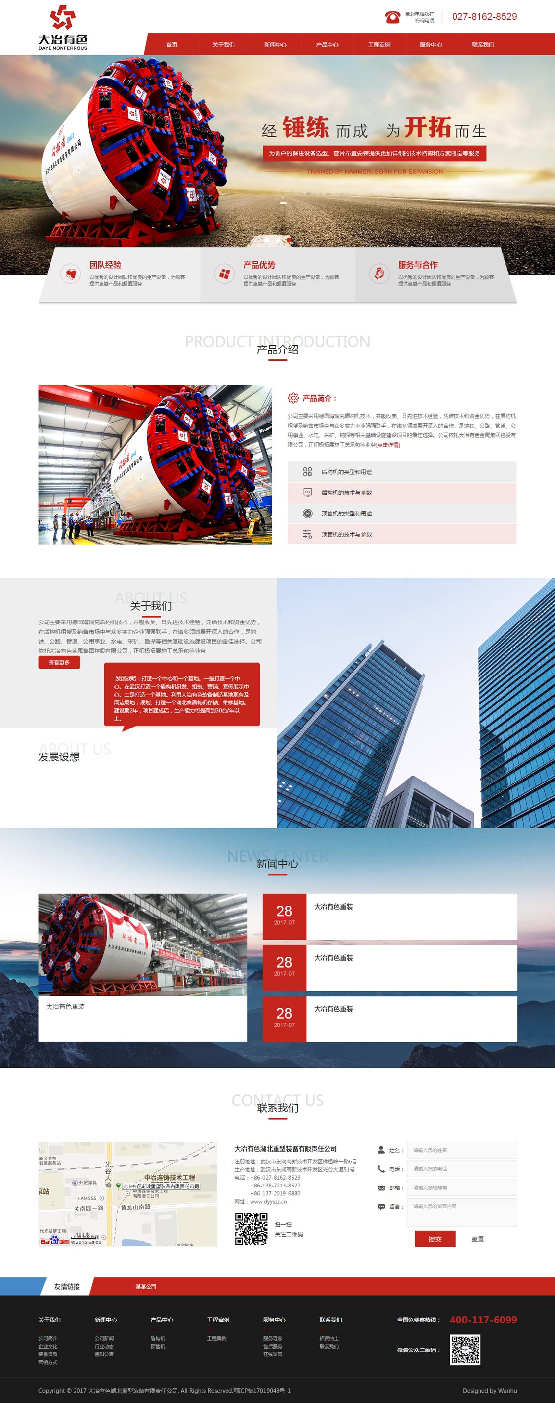 本页面展示为武汉万户网络设计制作的大冶有色湖北重型装备有限公司网站部分页面截图。