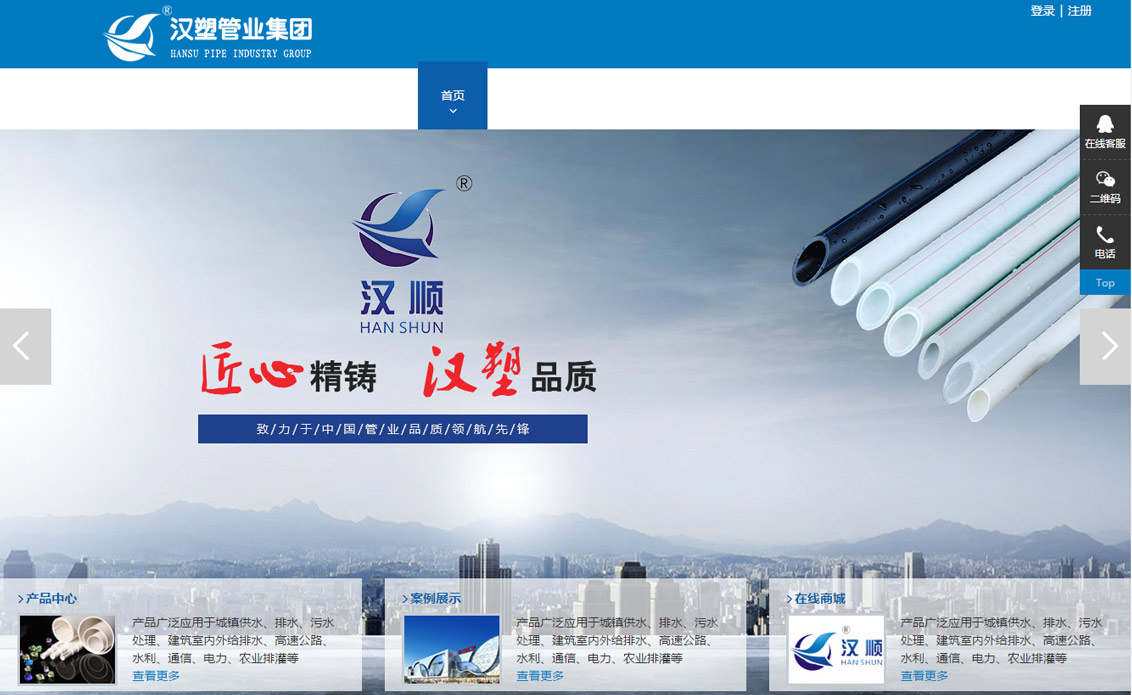本页面展示为武汉万户网络设计制作的湖北汉塑管业集团有限公司网站部分页面截图。