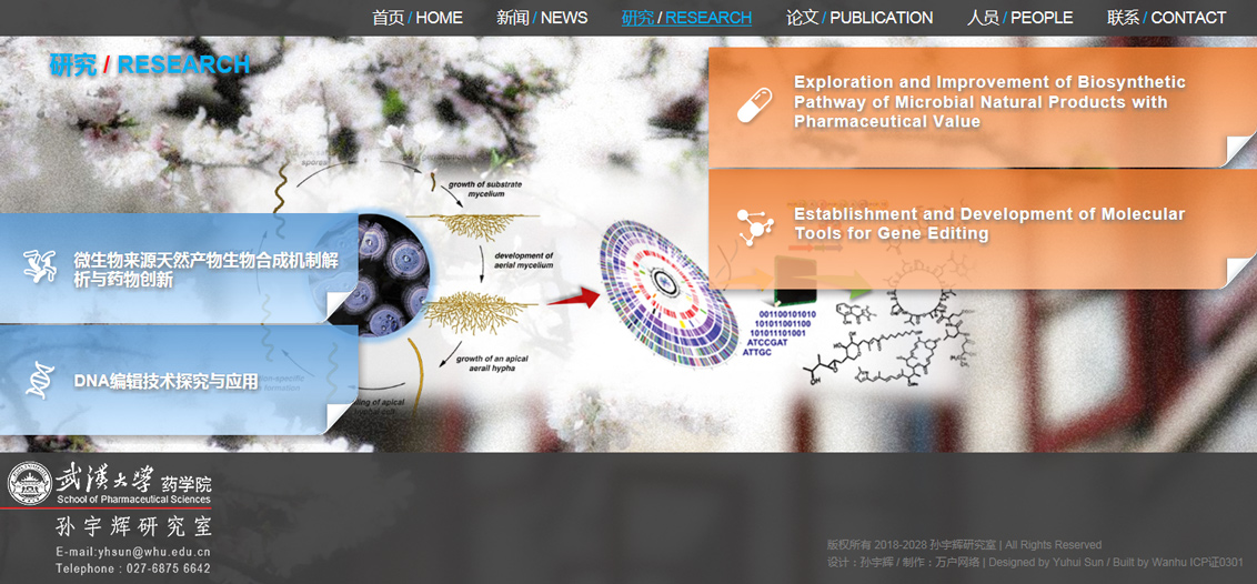 本页面展示为武汉万户网络设计制作的武汉大学药学院孙宇辉课题组网站部分页面截图。