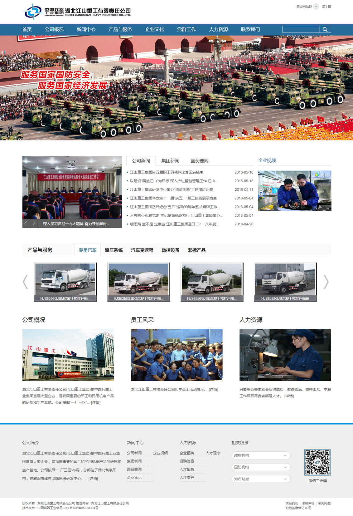 本页面展示为武汉万户网络设计制作的北江山重工有限责任公司网站部分页面截图。