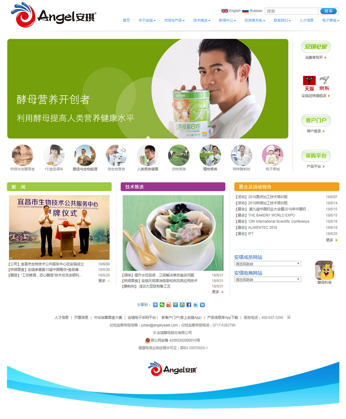 本页面展示为武汉万户网络设计制作的安琪酵母股份有限公司网站部分页面截图。
