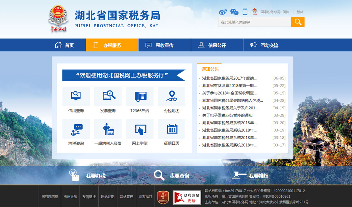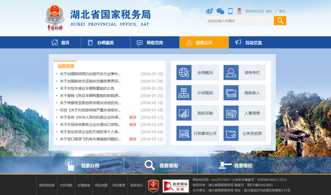 本页面展示为武汉万户网络设计制作的湖北省国税局网站部分页面截图。