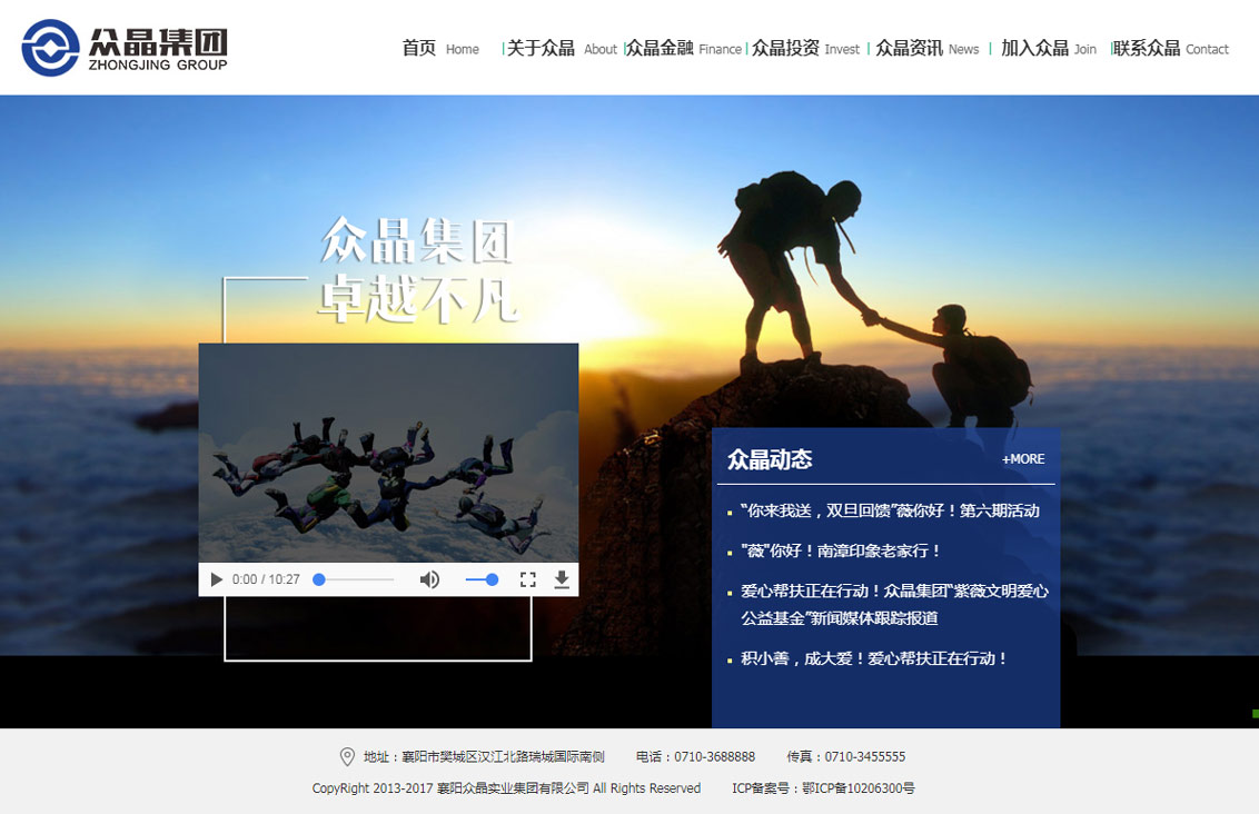 本页面展示为万户网络设计制作的襄阳众晶实业集团有限公司网站部分页面截图。
