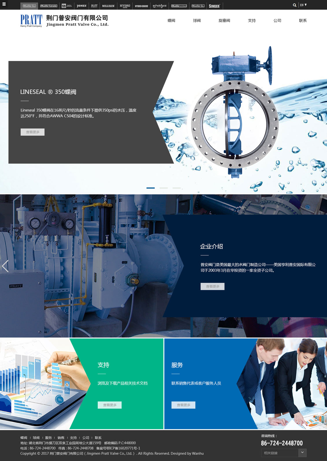 本页面展示为万户网络设计制作的荆门普安阀门有限公司网站部分页面截图。