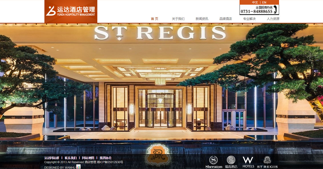 本页面展示为万户网络设计制作的湖南运达酒店管理有限公司网站部分页面截图。
