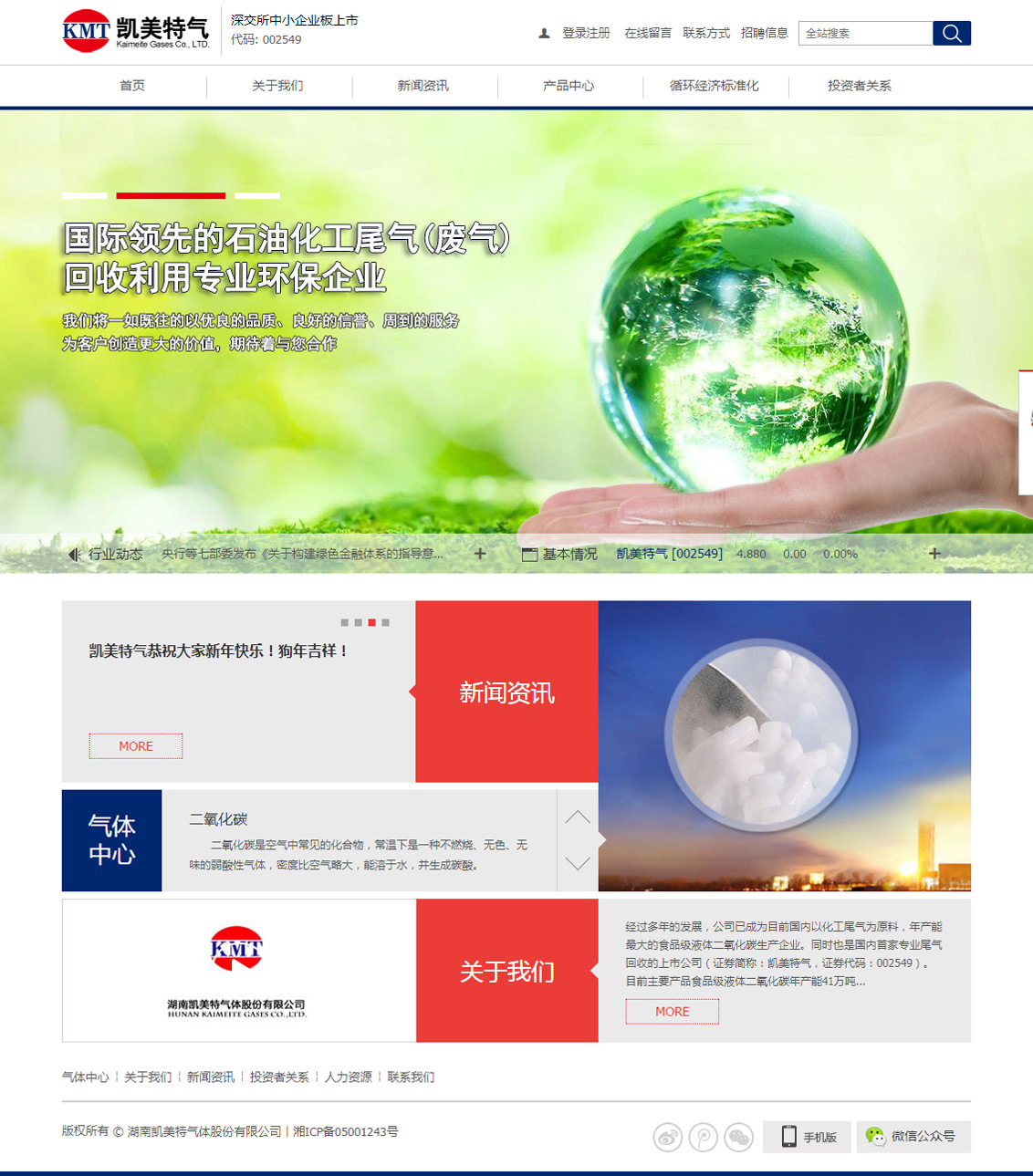 本页面展示为万户网络设计制作的湖南凯美特气体股份有限公司网站部分页面截图。