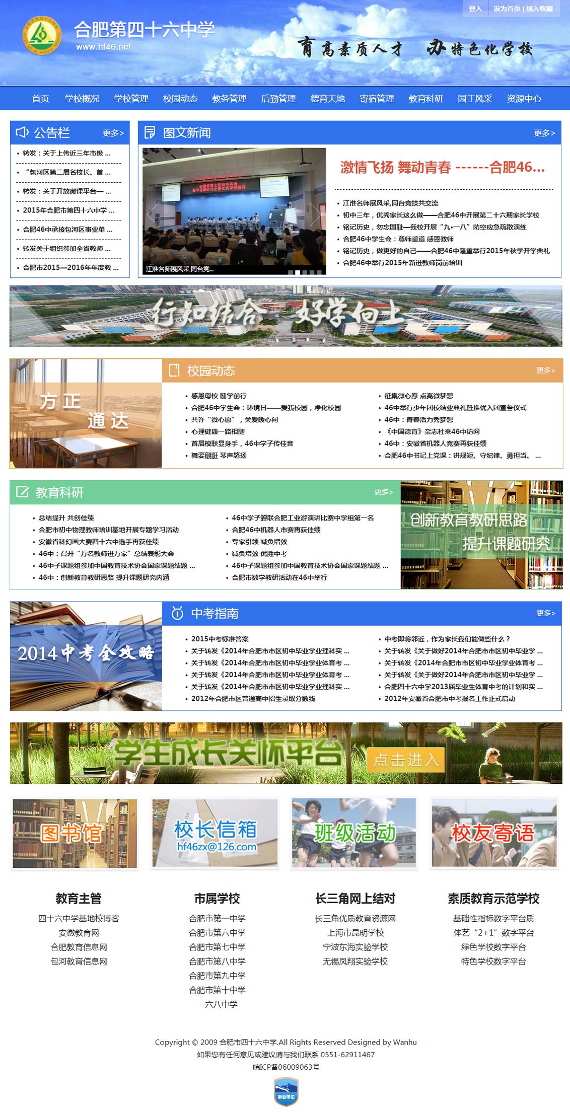 合肥市第四十六中学于1946年建校,前身为合肥市万慈小学,金寨路小学,1975年为现名。原校址位于三孝口南端金寨路406号,北望七桂塘,南靠红星路,占地面积6.33亩,校舍建筑面积9800多㎡。
