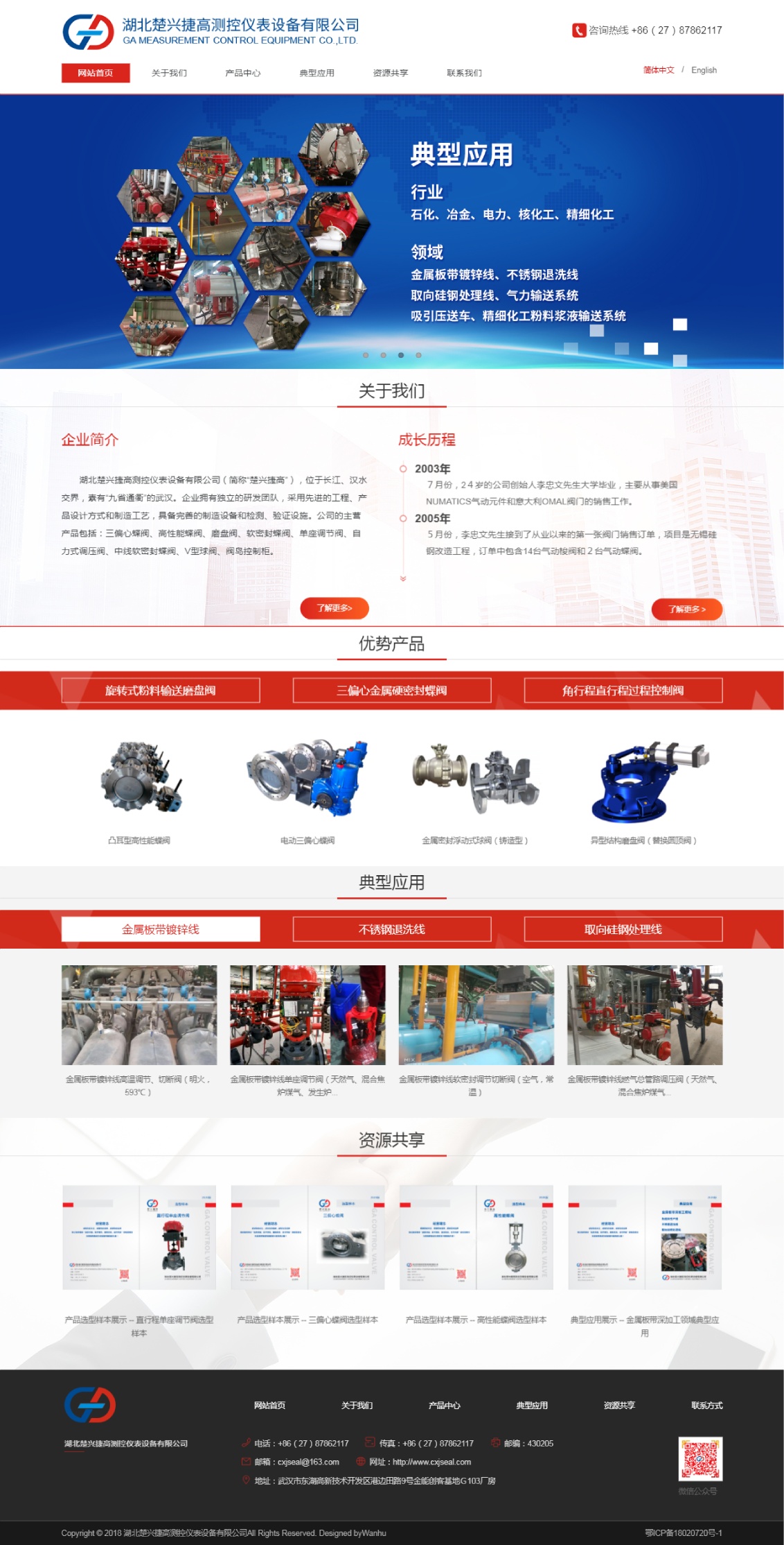 本页面展示为武汉万户设计制作的湖北楚兴捷高测控仪表设备有限公司网站部分页面截图。