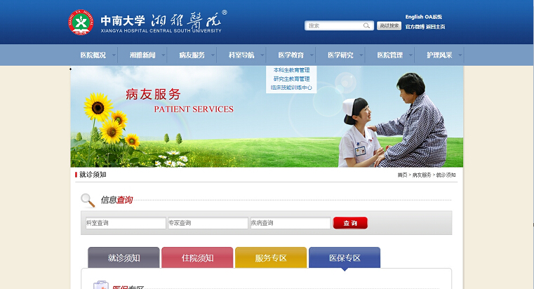 中南大学湘雅医院坐落于中国历史文化名城长沙,始建于1906年,由美国雅礼协会在中国创办。历经一百多年的发展,湘雅医院已成为集“医疗、教学、科研、预防、保健、康复”于一体的国家级大型综合医院,现由国家卫生和计划生育委员会直属,也隶属于国家教育部直属全国重点大学中南大学,是我国重要的医疗诊治、医学教育和医学研究中心。