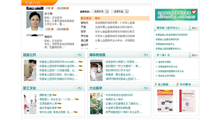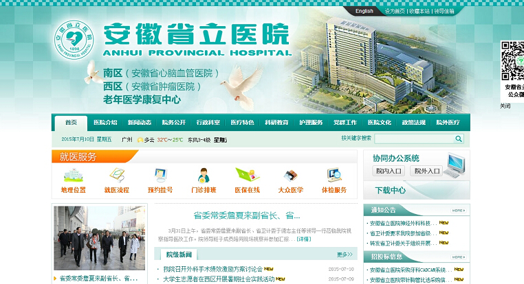 本次网站建设与医院的内部办公系统进行整合,实现通知公告等信息内容的一键发送,不需要在OA发布后再在网站进行发布,大大减轻了管理员的工作量、也方便了用户查看。在网站首页设置了用户经常使用的功能按钮,方便用户点击。