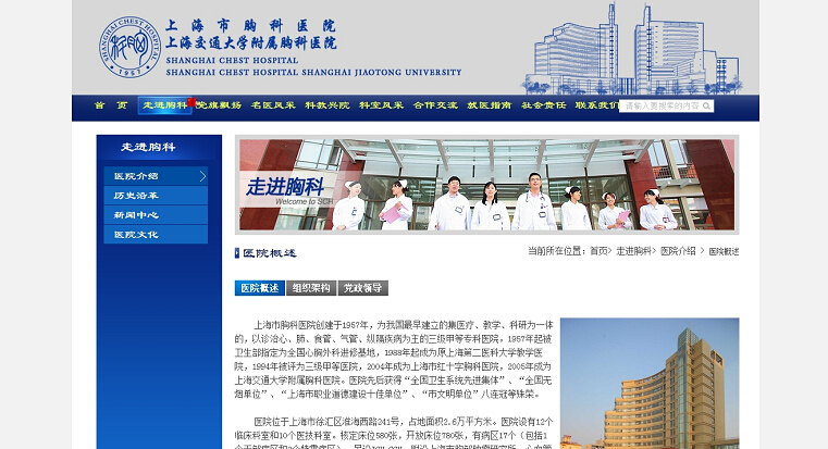 上海市胸科医院创建于1957年,为我国最早建立的集医疗、教学、科研为一体的,以诊治心、肺、食管、气管、纵隔疾病为主的三级甲等专科医院。